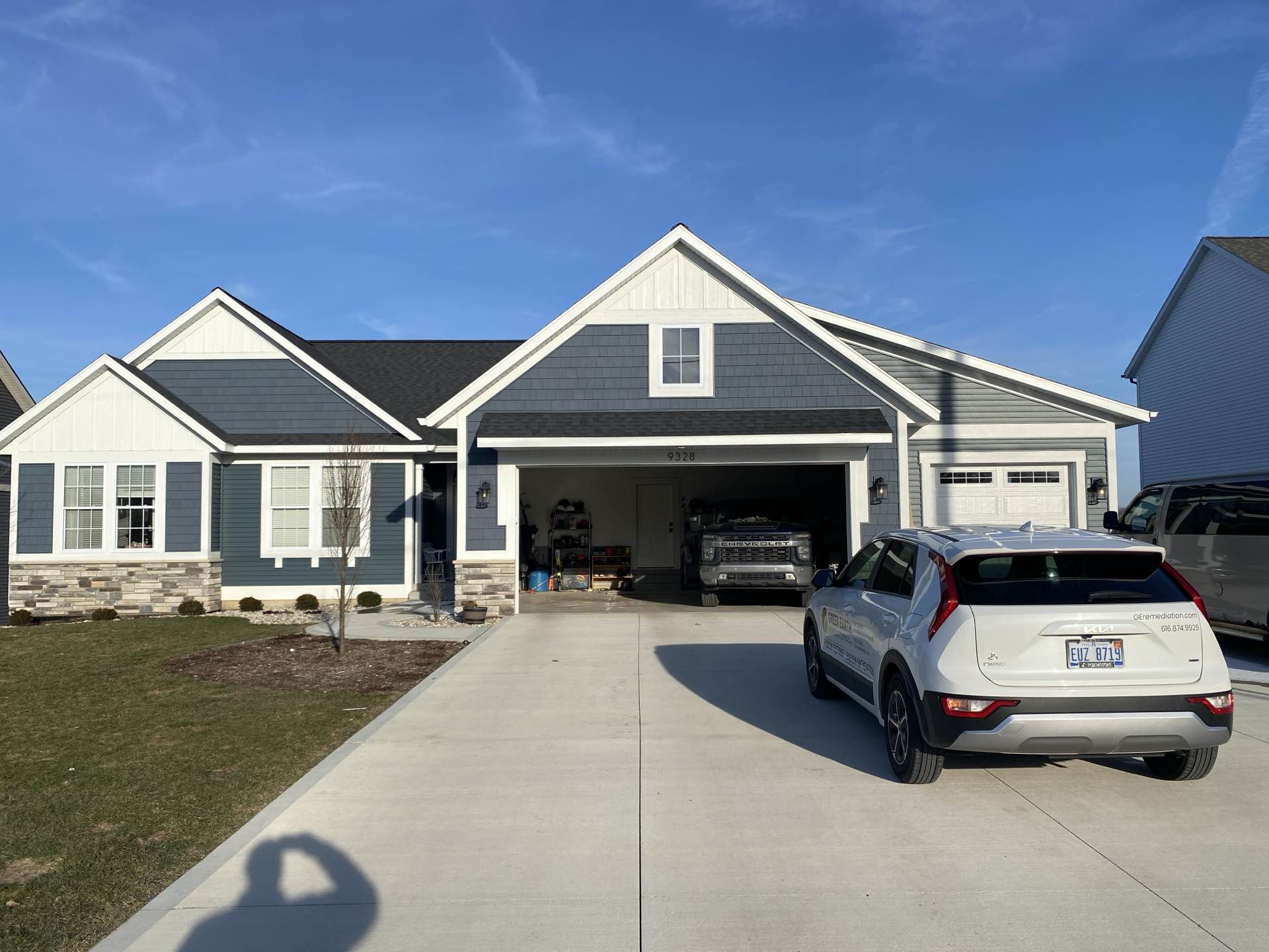 This new construction home has elevated radon levels. A radon mitigation system will be installed in the near future to lower the radon levels for the new owner