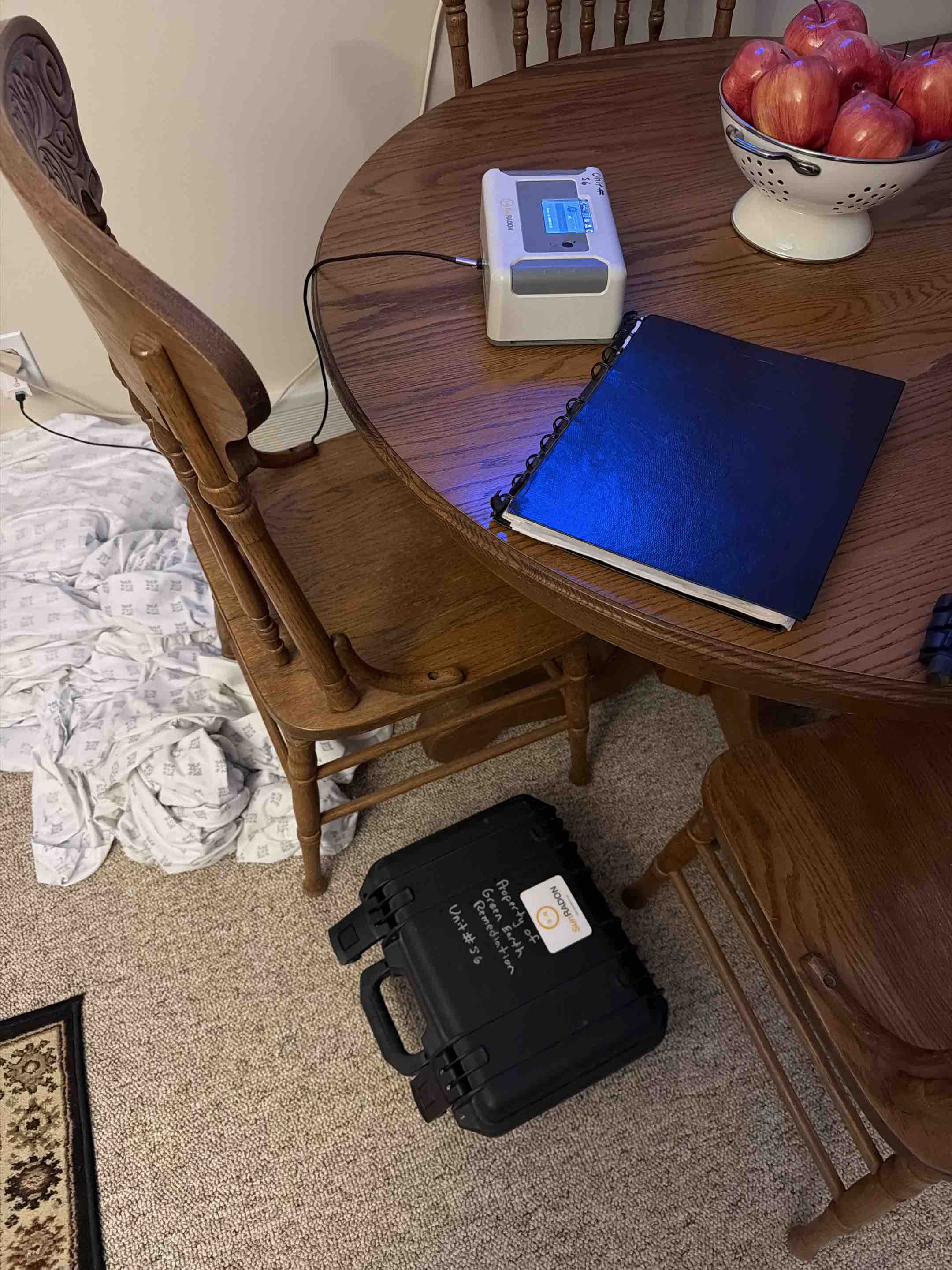This house has elevated levels of radon gas. Later this month a radon mitigation system will be installed to lower the radon levels