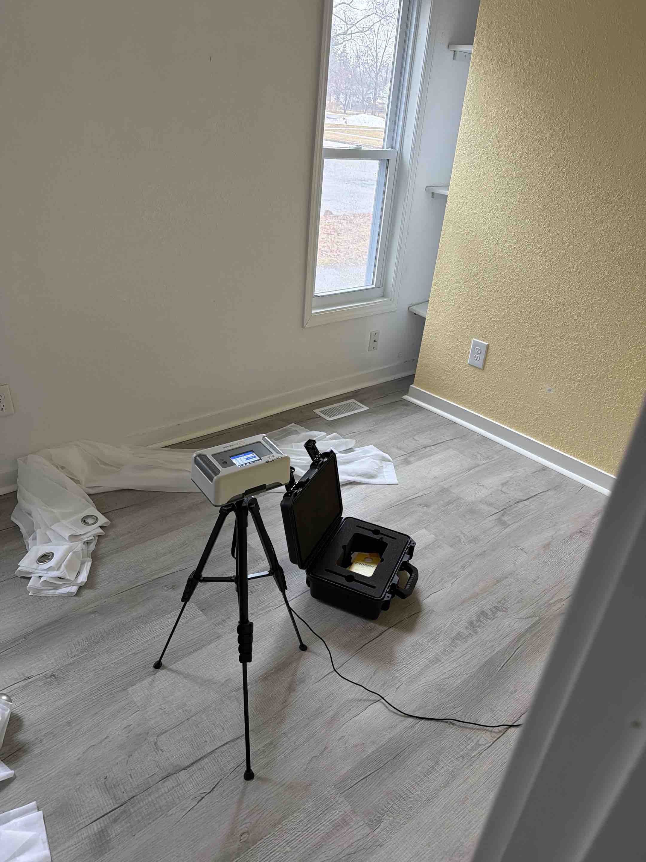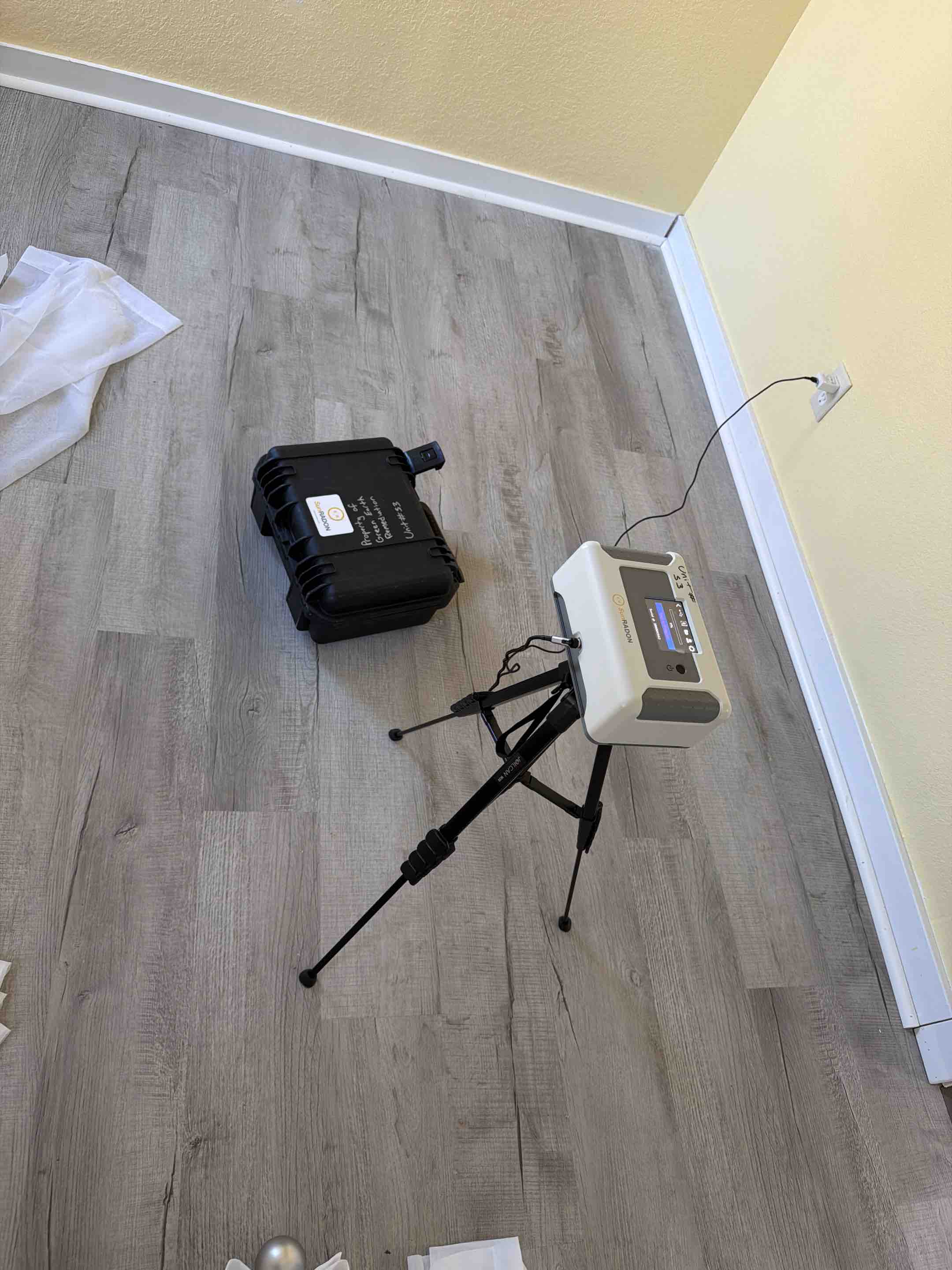A radon test is being performed at this house for the real estate transaction